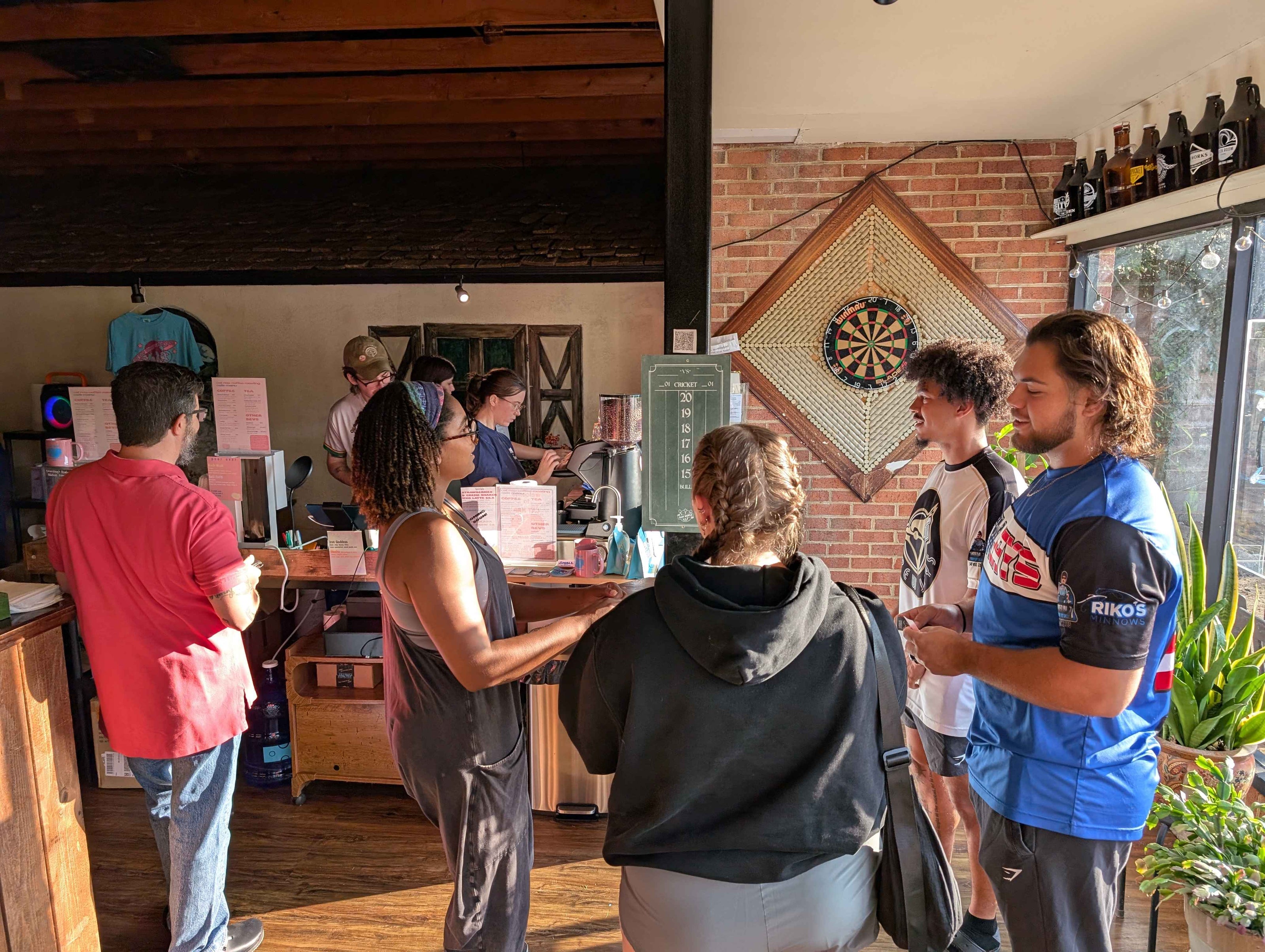 Plenty of seating inside and out. Belly up to the bar, gather friends around a table, or enjoy the weather on our large patio.